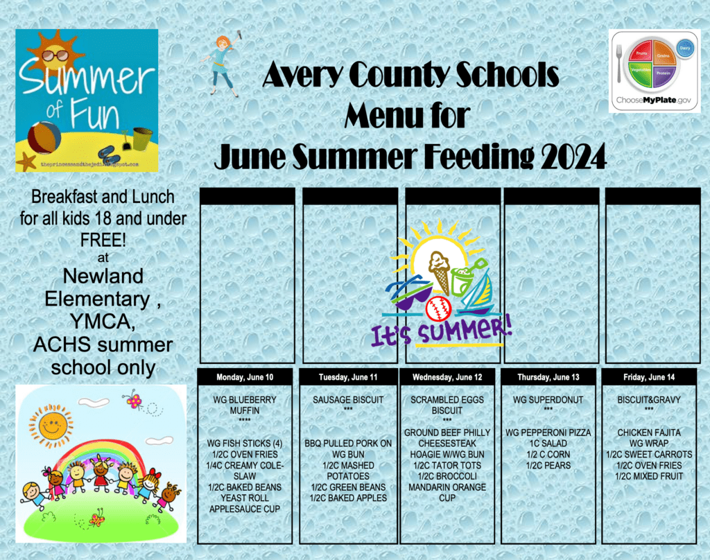 The free meals are also available for all students enrolled in summer school classes in the Avery County Public School System, which will end on Thursday, June 27th.