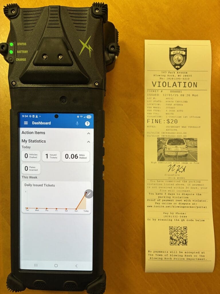 Along with hiring two parking enforcement officers the Blowing Rock Police Department partnered with T2 Parking Solutions. T2 provided both software and equipment.