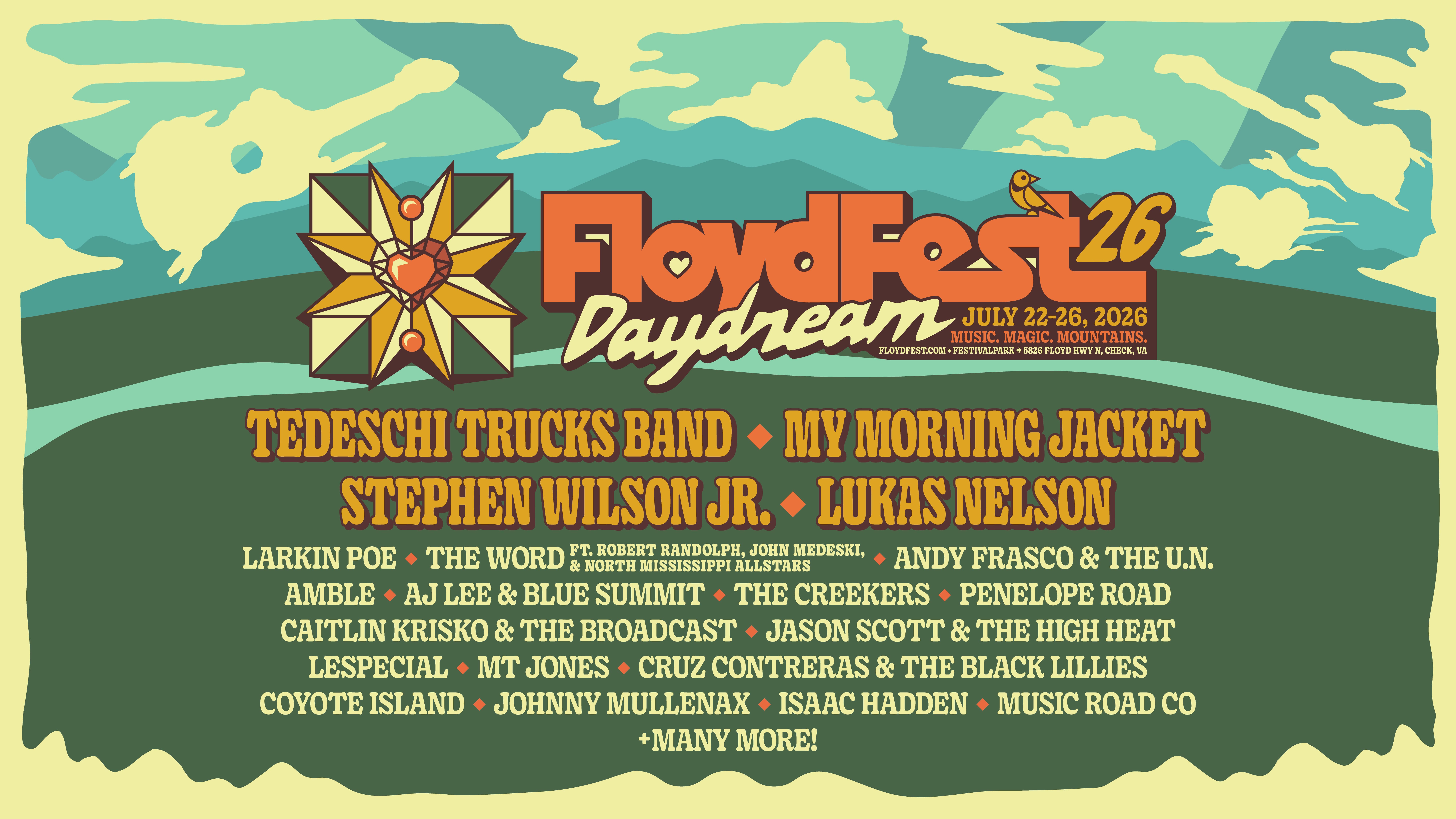 Announcing FloydFest 26~Daydream, July 22-26, 2026; Tedeschi Trucks Band, My Morning Jacket, Stephen Wilson Jr., Lukas Nelson to Headline – Tickets on Sale Now with ‘Early-Bird’ Pricing