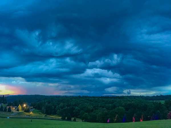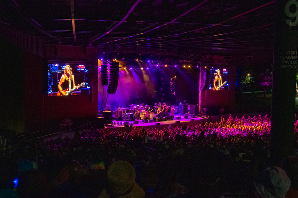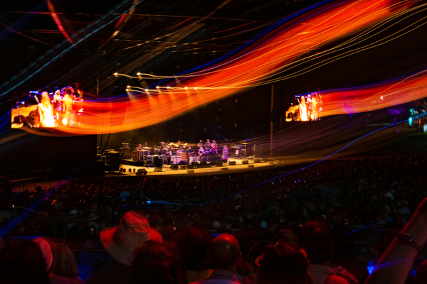 Arriving at the pedestrian entrance just before the security checkpoint, I overheard some police mentioning they needed to get together to make a weather decision. Noticing me standing around looking at the sky, one of the helpful Bethel Woods volunteers who guided me Friday suggested I get in the gate quickly as they were getting ready to start turning people away since a storm was coming in fast. I got in and found some cover under one of the building’s roof overhangs with dozens of other people doing the same thing. The sky was an explosion of lightning bolts and thunder coming from dark-tone, mammatus-like storm clouds. It started to rain sideways and everyone got soaked. But it blew over quickly and the-voice-of-god came over the speakers telling us that the severe weather had passed. They started letting people back in and after a bit of a delay, the concert began.