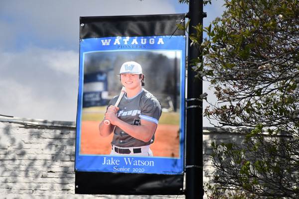 “We were very pleased to see our senior athletes honored on the banners in downtown Boone. They and their classmates have been hugely impacted by the extended school closure and will have to miss out on so many of the rituals and traditions that we expect at the culmination of our high school careers,” said Garrett Price, director of communications for Watauga County Schools. “We are immensely grateful to the Watauga Pioneer Booster Club and the Town of Boone for honoring and recognizing these athletes who will be sidelined for their final season because of COVID-19.”