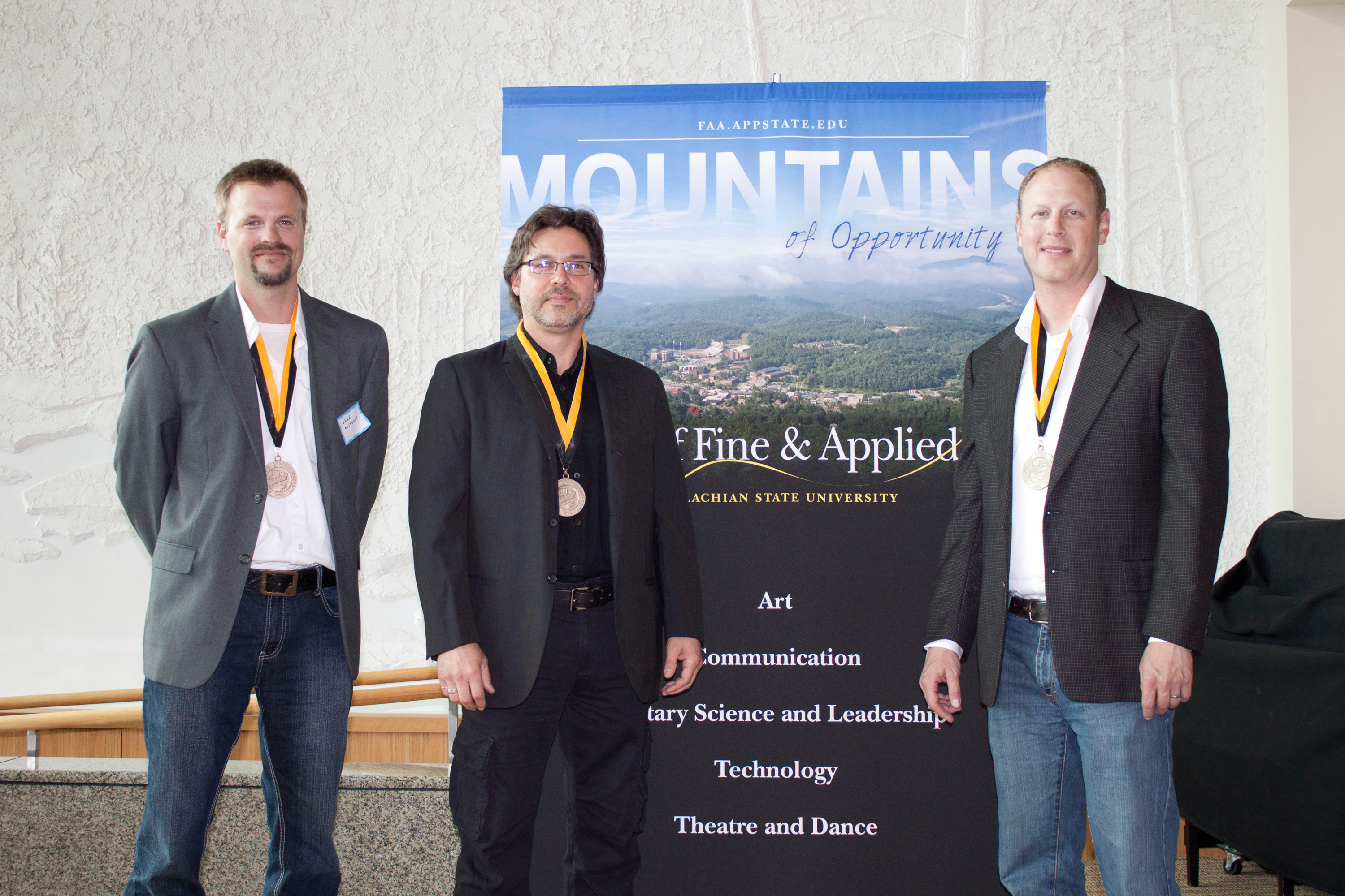 April 26, 2012. BOONE — The College of Fine and Applied Arts at Appalachian State University has presented its 2011-2012 faculty awards to Chad Everhart, Kern Maass and Scott Ludwig. They were recognized by their colleagues for exemplary teaching, service and creative activity at a reception April 19 and will be honored during commencement ceremonies Saturday, May 12.