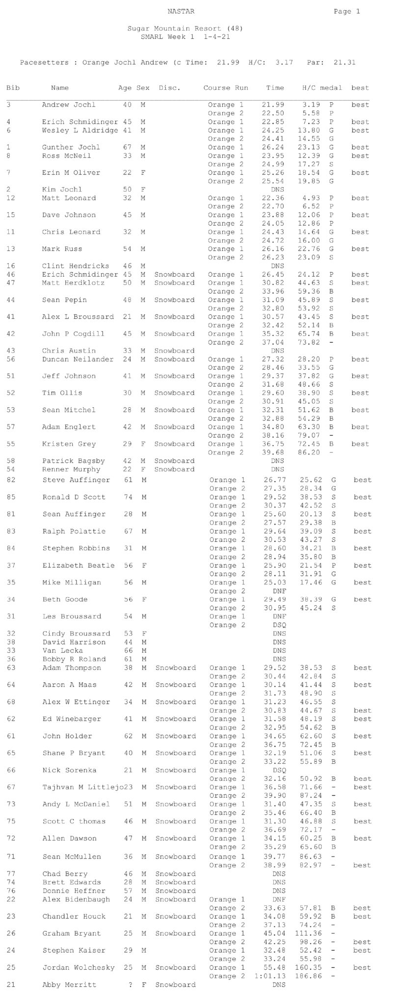 “Ski Country Sports and Sugar Mountain are proud to kick off this year’s SMARL event,” said Bill Leonard, owner of Ski Country Sports, who co-sponsors the racing league along with Sugar Mountain Resort.
